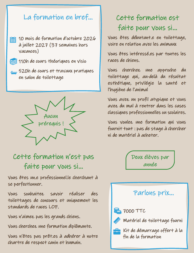 Feel free to call me to decide which prestation is more adapted to your pet !