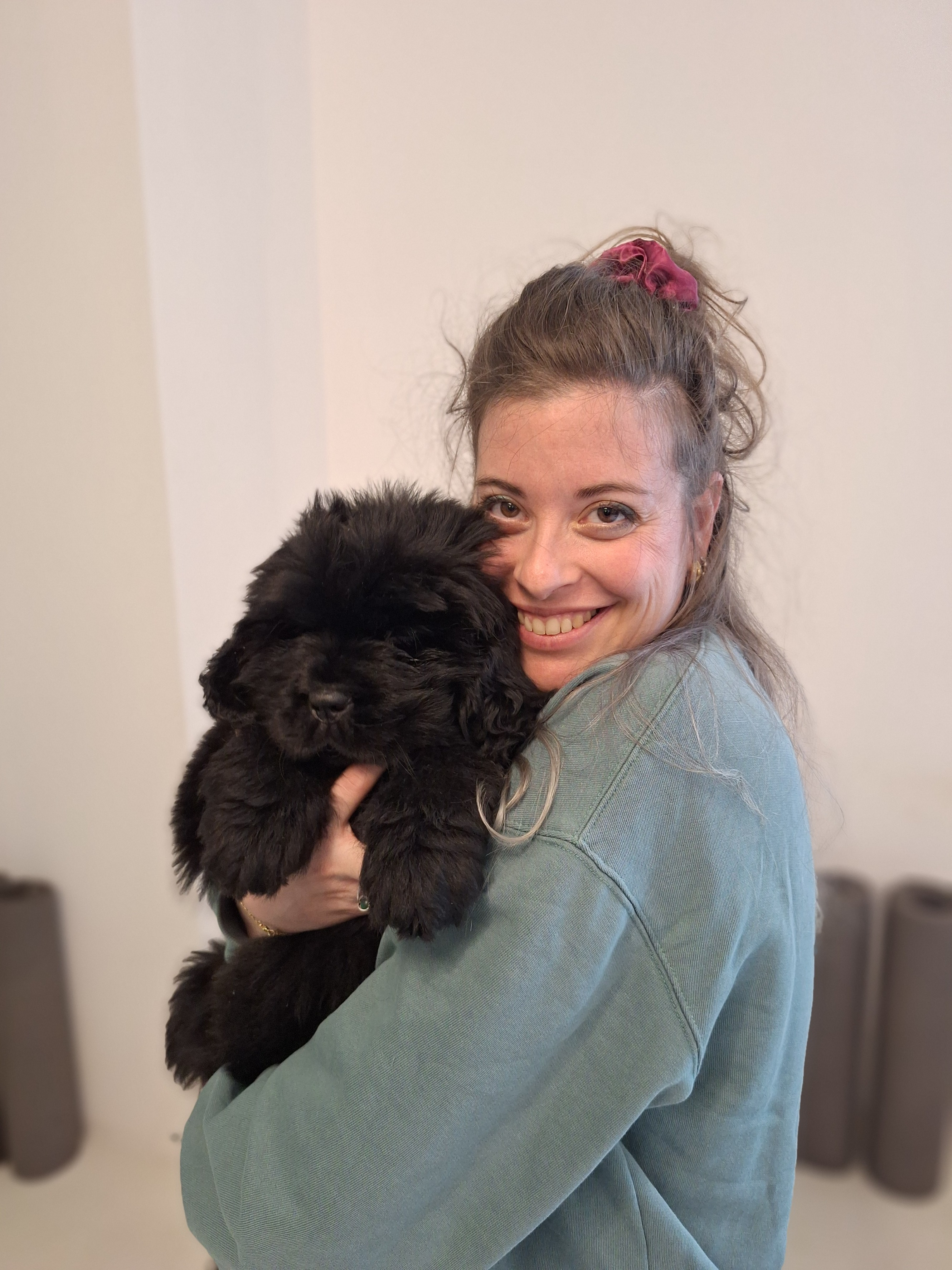 Pour l'instant en formation au Coin à Truffes, ma douceur, ma patience, et ma vision du métier font de moi un futur élément essentiel du salon. Pas encore opérationnelle avec les ciseaux, je maîtrise les bains moussants et les séances de brossage musclées !